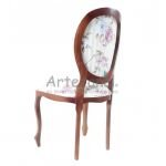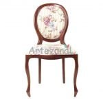 Cadeira Medalhão Lisa sem Braço possui características, dimensões, acabamento e qualidade de alto padrão, entalhadas a mão, são fieis aos traços originais dos modelos fabricados na França para a corte do Rei Luix VX em 1750, possuem estrutura em madeira nobre de jequitibá maciça e bactericida, percintas elásticas italianas, espuma certificada 100% poliuretano D28, pintura laqueada, dourada, prata, mel, etc, podem ser acabadas com Tachas Fumê ou com vivos, revestimentos em Jacquard, Sedas, Linhos, Chenilles, etc.