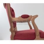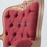 Poltrona Luiz XV Capitonê possui características, dimensões, acabamento e qualidade de alto padrão, entalhadas a mão, são fieis aos traços originais dos modelos fabricados na França para a corte do Rei Luix VX em 1750, possuem estrutura em madeira nobre de jequitibá maciça e bactericida, percintas elásticas italianas, espuma certificada 100% poliuretano D28, pintura laqueada, dourada, prata, mel, etc, podem ser acabadas com Tachas Fumê ou com vivos, revestimentos em Jacquard, Sedas, Linhos, Chenilles, etc.